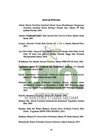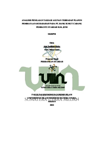 Rizky, Aini Fadillah (2022) Analisis Penilaian Taksasi Agunan Terhadap Plafon Pembiayaan Murabahah Pada PT. Bank Sumut Cabang Pembantu Syariah H.M. Joni. Skripsi thesis, Universitas Islam Negeri Sumatera Utara.