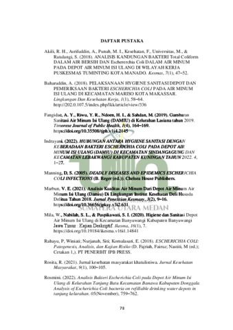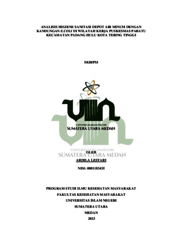 Lestari, Ardila (2023) Analisis Higiene Sanitasi Depot Air Minum Dengan Kandungan E.Coli Di Wilayah Kerja Puskesmas Pabatu Kecamatan Padang Hulu Kota Tebing Tinggi. Skripsi thesis, Universitas Islam Negeri Sumatera Utara.