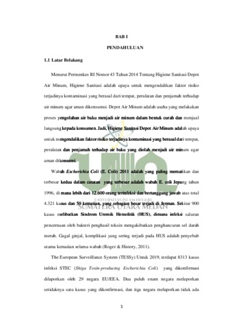Analisis Higiene Sanitasi Depot Air Minum Dengan Kandungan E.Coli Di Wilayah Kerja Puskesmas Pabatu Kecamatan Padang Hulu Kota Tebing Tinggi