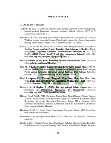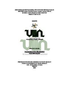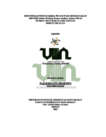 Prabowo, Fajar Rianto (2023) Identifikasi Postur Kerja Petani Padi Menggunakan Metode (Ovako Working Posture Analisys System) OWAS Di Desa Cinta Rakyat Kecamatan Percut Sei Tuan. Skripsi thesis, Universitas Islam Negeri Sumatera Utara.
