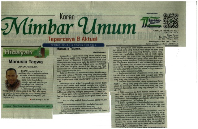 Rasyid, Abdul (2023) Manusia Taqwa. Mimbar Umum.