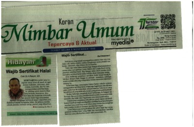Rasyid, Abdul (2023) Wajib Sertifikat Halal. Mimbar Umum.