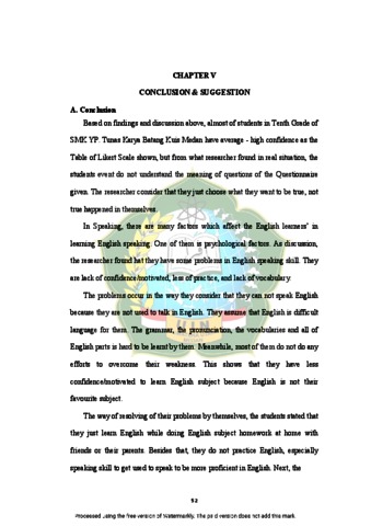 | Uncontrolled Keywords: | psychological problem, speaking confidence, motivation and interest. |