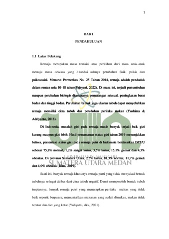 Nabila, Astri (2022) Hubungan Citra Tubuh dan Perilaku Makan dengan Status Gizi Pada Remaja Putri di Kelurahan Sei Kera Hilir I Kota Medan. Skripsi thesis, Universitas Islam Negeri Sumatera Utara.