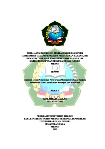 Daulay, Asni Amelia (2022) Perluasan Instrumen Penilaian Berbasis Peer Assessment Dalam Mengukur Penguasaan Bahan ajar Dan Minat Belajar Anak didik Pada Bahan ajar Sistem Pernapasan Mansuia Di SMA Swasta Imelda Medan. Skripsi thesis, Universitas Islam Negeri Sumatera Utara.