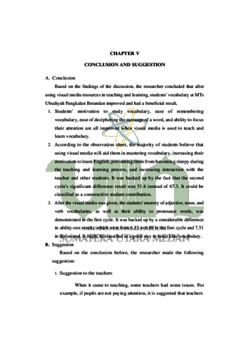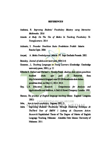 Improving the Student’s Vocabulary Mastery by Using Visual Media at Mts Ubudiyah Pangkalan Brandan.