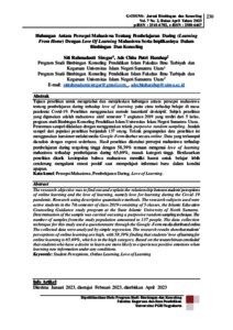 | Uncontrolled Keywords: | Persepsi Mahasiswa, Pembelajaran Daring, Love of Learning. |
