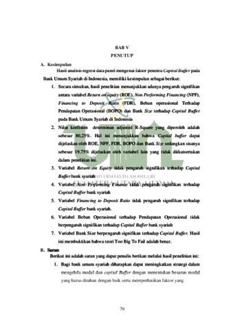 Uncontrolled Keywords: Capital Buffer, ROE, FDR, NPF, BOPO dan Bank Size