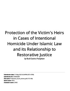 Panjaitan, Budi Sastra Bukti Turnitin Protection of the Victim's Heirs in Cases of Intentional Homicide Under Islamic Law and its Relationship to Restorative Justice. UIN Sumatera Utara Medan.