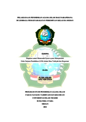 Azhari, Putri (2021) Pelaksanaan Pendidikan Agama Islam Bagi Narapidana di Lembaga Pemasyarakatan Perempuan Kelas IIA Medan. Skripsi thesis, Universitas Islam Negeri Sumatera Utara.