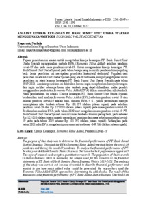 The purpose of this study was to determine the financial performance of PT. Bank Sumut Syariah Business Unit used the EVA (Economic Value Added) method before the covid-19 pandemic and during the covid-19 pandemic. To analyze the financial performance of PT. In what year did Bank Sumut's Sharia Business Unit have the best performance appraisal? This type of research is descriptive quantitative research. The population of this research is Sharia Business Units in Indonesia, the sample used for this research is the financial statements of PT. Bank of North Sumatra Sharia Business Unit in 2019-2021. The analysis of this study was carried out because it wanted to describe financial performance and wanted to see how much added value could be generated, the researchers used the Economic Value Added (EVA) approach in determining the added value. The result of this discussion is the financial performance of PT. Bank Sumut Sharia Business Unit based on the results of the Economic Value Added (EVA) analysis before the covid-19 pandemic and during the covid-19 pandemic was good, where EVA > 0 , i.e. the company was able to create added value of Rp. 101,297 (in millions of rupiah) before the covid-19 pandemic and Rp. 125,010 (in millions of rupiah) during the covid-19 pandemic. Based on EVA analysis in 2020 when experiencing the COVID-19 pandemic, PT. Bank of North Sumatra Sharia Business Unit has the best economic added value, which is Rp. 125,010 (in millions of rupiah) has increased from the period before the covid-19 pandemic, namely in 2019 of Rp. 101,297 (in millions of rupiah). Meanwhile, in 2021 the EVA value decreased by -649,766 (in millions of rupiah).