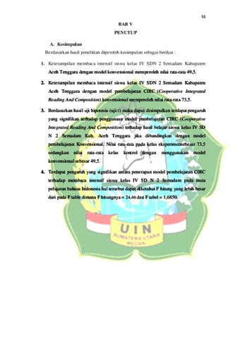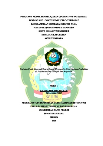Amarullah, Khairanda (2021) Pengaruh Model Pembelajaran Cooperative Integrated Reading And Composition (CIRC) Terhadap Keterampilan Membaca Intensif Pada Mata Pelajaran Bahasa Indonesia Siswa Kelas IV SD Negeri 2 Semadam Kabupaten Aceh Tenggara. Skripsi thesis, Universitas Islam Negeri Sumatera Utara.