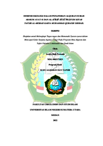 Permata, Arnita Diah (2022) Dimensi Ekologi Dalam Penafsiran Alquran Surah Ar-Rum Ayat 41 Dan Al-A'raf Ayat 56 (Studi Kitab Tafsir AlMisbah Karya Muhammad Quraish Shihab). Skripsi thesis, Universitas Islam Negeri Sumatera Utara.