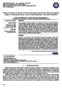 Ks, Alvin Aulia Rahman and Peranginangin, Indira Fatra Deni (2022) Political Communications Of The Indonesian Democracy Party Struggling (Pdip) In Getting The Most Vote In Deli Serdang In The 2019 Election. Legal Brief, 11 (3). ISSN 2722-4643
