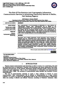 Syahrin, Alfi and Kholil, Syukur (2022) The Role Of The Statistics And Cryptography Information Communication Services In Advertising Community Services At Baliho, Deli Serdang Regency. Legal Brief, 11 (3). ISSN 2722-4643