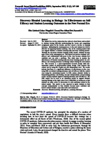 The limited face-to-face interaction has reduced school hours and resulted in students having difficulty understanding the lesson and completing assignments given by the teacher, and this caused a decline in learning outcomes. Optimizing the learning process in the new normal era will be effective by applying blended learning. One of the learning models that can support students is blended learning with discovery learning models. Through the discovery blended learning (DBL) model, students become more active in the learning process. This model can increase students' self- efficacy and collaboration with peers in the class because students feel confident and can solve a problem. This study aims to analyze the effectiveness of blended learning with discovery learning models on self- efficacy and learning outcomes in Biology subject during the new normal era. This research is a quasi-experimental research design with non- equivalent control of pretest-posttest group design. Data analysis was carried out by using the N-gain test and independent t-test. The results indicate that there is a significant difference in effectiveness in the class using DBL on student learning outcomes and self-efficacy with the control class using the conventional model. In DBL syntax, students' ability in formulating problems and finding concepts independently, and presenting results can help students improve learning outcomes and self-efficacy. The DBL model can be used as an alternative model to support students learning Biology at the high school level (SMA/MA) in Indonesia so that students are more active in discussions to solve problems related to the subject matter. This model is also expected to guide students to find concepts independently so that students become more confident and believe in their abilities, especially in the new normal era.