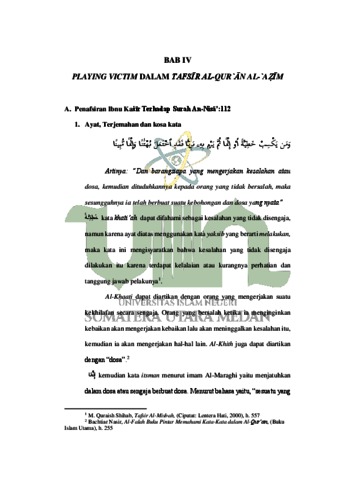 Sihaloho, Fitriana (2023) Playing Victim Dalam Kehidupan Sosial (Analisis Penafsiran Ibnu Kaṡīr Terhadap Q.S An-Nisā’: 112 Dalam Tafsīr Al-Qur`ān Al-`Aẓīm). Skripsi thesis, Universitas Islam Negeri Sumatera Utara.