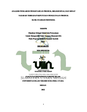 Mariani, Sri (2022) Analisis Pengaruh Pengetahuan Produk,Religiusitas, dan Minat Nasabah Terhadap Keputusan Penggunaan Produk Bank Syariah Indonesia. Skripsi thesis, Universitas Islam Negeri Sumatera Utara.