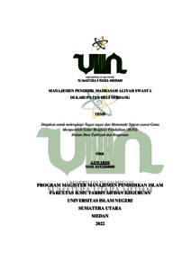 Azwardi, Azwardi (2022) Manajemen Pendidik Madrasah Aliyah Swasta Di Kabupaten Deli Serdang. Masters thesis, Universitas Islam Negeri Sumatera Utara.