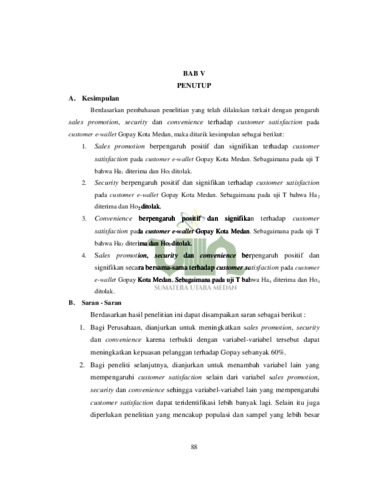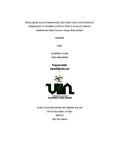 Sari, Karmila (2023) Pengaruh Sales Promotion, Security Dan Convenience Terhadap Customer Satisfaction E-Wallet Gopay (Studi Kasus Pada Customer Gopay Kota Medan). Skripsi thesis, Universitas Islam Negeri Sumatera Utara.