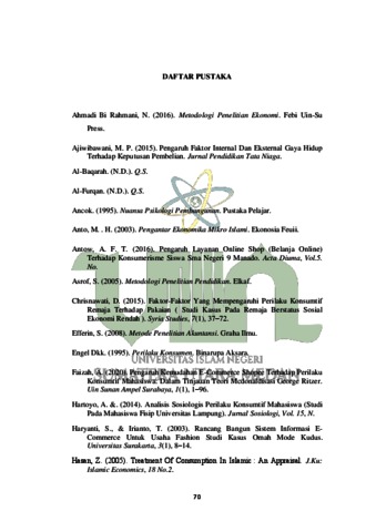 Hidayah, Muhammad Arif (2023) Faktor yang mempengaruhi perilaku konsumtif dalam berbelanja online di e-commerce (Studi Kasus Mahasiswa FEBI UINSU). Skripsi thesis, Universitas Islam Negeri Sumatera Utara.