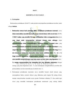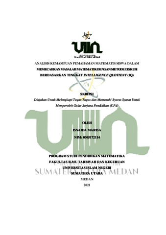 Marisa, Isnaida (2021) Analisis Kemampuan Pemahaman Matematis Siswa Dalam Memecahkan Masalah Matematik Dengan Metode Diskusi Berdasarkan Tingkat Intelligence Quotient (IQ). Skripsi thesis, Universitas Islam Negeri Sumatera Utara.
