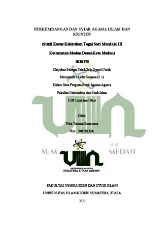 Simamora, Vika Tamara (2022) Perkembangan Dan Syiar Agama Islam dan Kristen (Studi Kasus Kelurahan Tegal Sari Mandala III Kecamatan Medan Denai Kota Medan). Skripsi thesis, Universitas Islam Negeri Sumatera Utara.