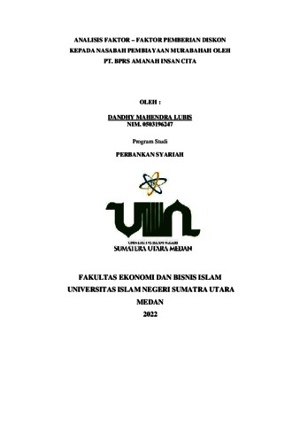 Lubis, Dandhy Mahendra (2022) Analisis Faktor - Faktor Pemberian Diskon Kepada Nasabah Pembiayaan Murabahah Oleh PT. BPRS Amanah Insan Cita. Skripsi thesis, Universitas Islam Negeri Sumatera Utara.
