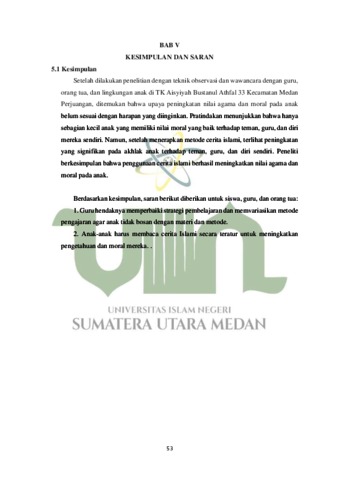 Syahfitri, Siska Diah (2022) Upaya Meningkatkan Nilai Agama Dan Moral Anak Usia Dini Melalui Metode Cerita Islami Di TK Aisyiyah Bustanul Athfal 33 Kecamatan Medan Perjuangan. Skripsi thesis, Universitas Islam Negeri Sumatera Utara Medan.