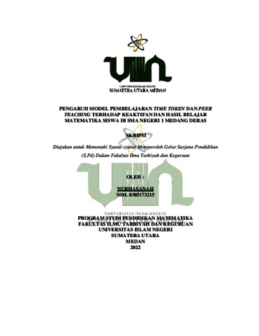 Nurhasanah, Nurhasanah (2022) Pengaruh Model Pembelajaran Time Token dan Peer Teaching Terhadap Keaktifan dan Hasil Belajar Matematika Siswa di SMA Negeri 1 Medang Deras. Skripsi thesis, Universitas Islam Negeri Sumatera Utara.