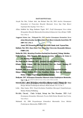 | Uncontrolled Keywords: | Kemampuan Komunikasi Matematis, Gaya Belajar Visual |