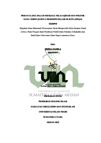 Nadila, Friska (2022) Peran Ulama Dalam Menjaga Nilai Dan Aqidah Politik Islam Guna Terwujudnya Pemimpin Islami Di Kota Binjai. Skripsi thesis, Universitas Islam Negeri Sumatera Utara Medan.