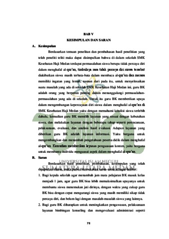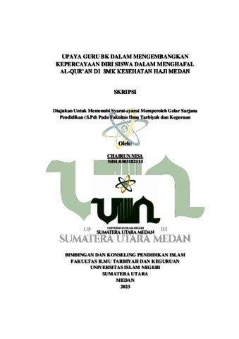 Nisa, Chairun (2023) Upaya Guru BK Dalam Mengembangkan Kepercayaan Diri Siswa Dalam Menghafal Al-Qur’an di SMK Kesehatan Haji Medan. Skripsi thesis, Universitas Islam Negeri Sumatera Utara.