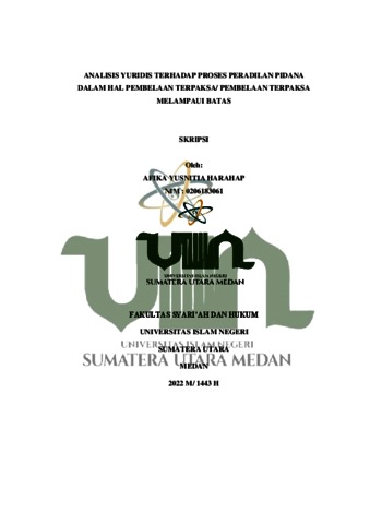 Harahap, Afika Yusnitia (2022) Analisis yuridis terhadap proses peradilan pidana dalam hal pembelaan terpaksa/pembelaan terpaksa melampaui batas. Skripsi thesis, Universitas Islam Negeri Sumatera Utara.