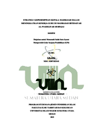Gilang, Gilang (2023) Strategi Kepemimpinan Kepala Madrasah Dalam Meningkatkan Kinerja Guru Di Madrassah Ibtidaiyah Al-Washliyah 48 Binjai. Skripsi thesis, Universitas Islam Negeri Sumatera Utara Medan.