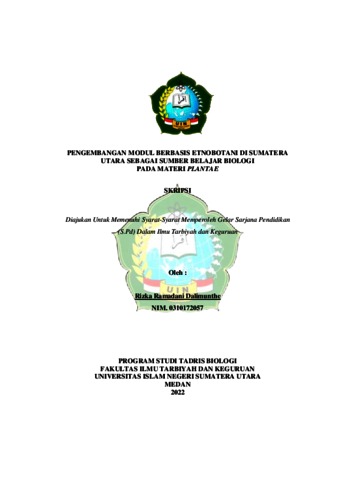 Dalimunthe, Rizka Ramadani (2022) Pengembangan Modul Berbasis Etnobotani di Sumatera Utara Sebagai Sumber Belajar Biologi Pada Materi Plantae. Skripsi thesis, Universitas Islam Negeri Sumatera Utara.