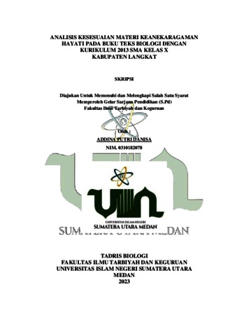 Danisa, Addina Putri (2023) Analisis kesesuaian Materi Keanekaragaman Hayati Pada Buku Teks Biologi Dengan Kurikulum 2013 SMA Kelas X Kabupaten Langkat. Skripsi thesis, Universitas Islam Negeri Sumatera Utara Medan.