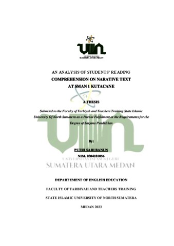 Banun, Putri Sari (2023) An Analysis of Students’ Reading Comprehension on Narative Text at SMAN 1 Kutacane. Skripsi thesis, Universitas Islam Negeri Sumatera Utara Medan.