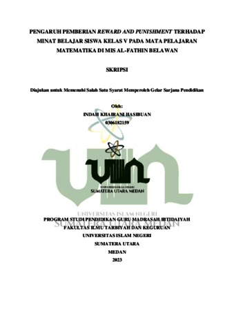 Hasibuan, Indah Khairani (2023) Pengaruh Pemberian Reward and Punishment Terhadap Minat Belajar Siswa Kelas V Pada Mata Pelajaran Matematika di MIS Al-Fathin Belawan. Skripsi thesis, Universitas Islam Negeri Sumatera Utara Medan.