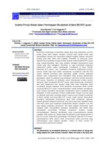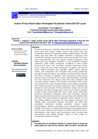Maulida, Isna and Anggraini, Tuti (2022) Analisis Prinsip Nisbah dalam Pembiayaan Murabahah di Bank BSI KCP Lauser. Jurnal Ekombis Review – Jurnal Ilmiah Ekonomi dan Bisnis, 10 (2). ISSN ISSN: 2338-8412 e-ISSN : 2716-4411