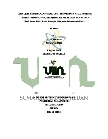 Ardianti, Siti (2023) Analisis Penerapan Teknologi Informasi Pada Kualitas Sistem Informasi Akuntansi Dalam Pelayanan Rawat Inap (Studi Kasus di RSUD Aek Kanopan Kabupaten Labuhanbatu Utara). Skripsi thesis, Universitas Islam Negeri Sumatera Utara.