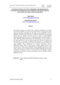 In an effort to improve the welfare of the community, philanthropy is an effort that provides solutions to overcome the people who live within. Islam is often about the teachings of philanthropy. By taking a study of ZISWAF's Product Bundling. Therefore, this study aims to determine marketing strategies and factors that can influence customer interest or desire in using ZISWAF Product Bundling and the process of obtaining benefits from this product at Bank Muamalat Medan Sukaramai. The methodology of this research is descriptive qualitative with an empirical approach, because the purpose of this research is to describe a situation that is factual in a systematic and accurate manner. The results showed that what made customers interested in using ZISWAF Product Bundling were Product Innovation Factors, Marketing Strategy Factors, Trust Factors, Product Quality Factors, and Income Factors. Then, that the ZISWAF Product Bundling referred to in this study is the discovery of banking products from Bank Muamalat which can be a financial investment as well as an investment in the afterlife. Product innovation is in the form of Savings and Deposits which are bundled with the ZISWAF program.