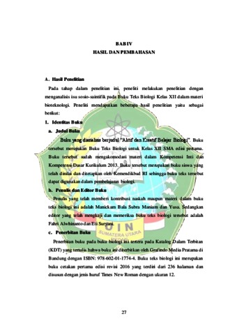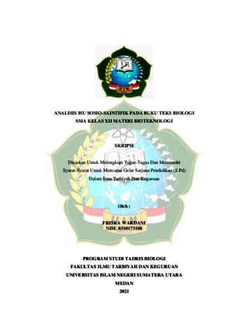 Wardani, Friska (2021) Analisis Isu Sosio-Saintifik Pada Buku Teks Biologi SMA Materi Bioteknologi. Skripsi thesis, Universitas Islam Negeri Sumatera Utara Medan.