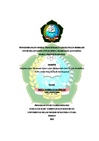 Hasibuan, Nova Andriani (2022) Pengembangan Modul Pencemaran Lingkungan Berbasis Studi Islam Sains Untuk Siswa Madrasah Aliyah Nurul Iman Sukaramai. Skripsi thesis, Universitas Islam Negeri Sumatera Utara.