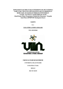 Karo, Yoza Fitri Latersya Br (2022) Implementasi peraturan pemerintah (PP) Nomor 6 Tahun 2021 tentang penyelenggaraan perizinan berusaha di daerah terhadap pendirian usaha di tinjau dari fiqh siyasah (Studi Kasus Dinas Penanaman Modal dan Pelayanan Terpadu Satu Pintu (DPMPTSP) Kabupaten Karo). Skripsi thesis, Universitas Islam Negeri Sumatera Utara.