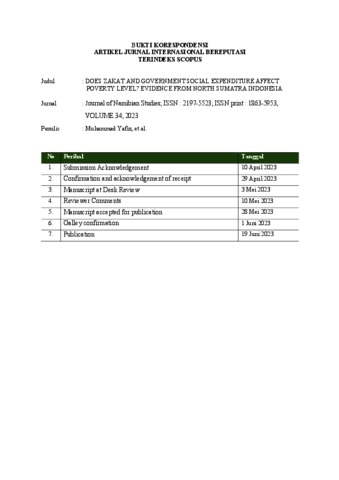 Yafiz, Muhammad DOES ZAKAT AND GOVERNMENT SOCIAL EXPENDITURE AFFECT POVERTY LEVEL? EVIDENCE FROM NORTH SUMATRA INDONESIA. UIN Sumatera Utara Medan, Medan.