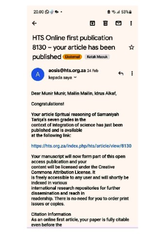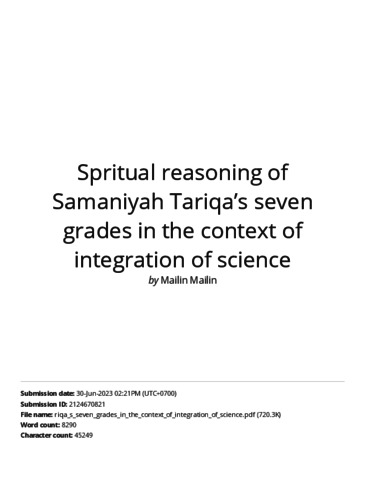 Bukti Turnitin Spritual reasoning of Samaniyah Tariqa’s seven grades in the context of integration of science.pdf
