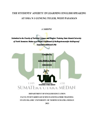 Puspa, Ayu Widya (2023) The Students anxiety in learning English speaking at SMA N 1 Gunung Tuleh, West Pasaman. Skripsi thesis, Universitas Islam Negeri Sumatera Utara Medan.