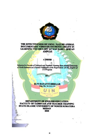 Siregar, Elvi Dayanti (2020) The Effectiveness of Using Nature Animal Documentary Video on Student’s Ability in Learning Vocabulary at MAS Darul Qur’an Amplas. Skripsi thesis, Universitas Islam Negeri Sumatera Utara.