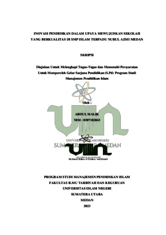 Malik, Abdul (2023) Inovasi Pendidikan Dalam Upaya Mewujudkan Sekolah yang Berkualitas di SMP Islam Terpadu Nurul Azmi Medan. Skripsi thesis, Universitas Islam Negeri Sumatera Utara Medan.